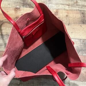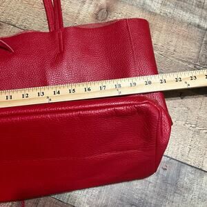 Red Genuine Pebbled Leather Italian Shoulder Bag Tote 16" x 11" x 5"