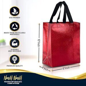 REINFORCED BOTTOM – Each of the 8(W)x 4(D)x10"(H) red party bags comes with a cardboard insert to prevent the bottom of the bag from curving and maintain the tote bag shape even when the bag is empty.