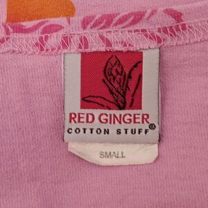 Bright pink with pineapple and tropical graphics, a block print look. Short sleeves, pockets. Pull over. Size S measures 36 at chest, 36 at waist, 42 at hips. 34.5 long from shoulder to hem. Perfect for Summer!