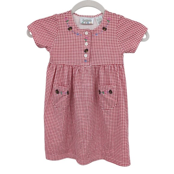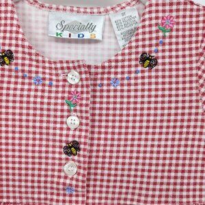 Red Gingham 3T Dress w/ Bee & Floral Embroidery Picnic Church by Specialty Kids