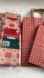 4 small red gingham checked paper bags w/ handles (measures 8.5” x 5.25” x 3.5”)