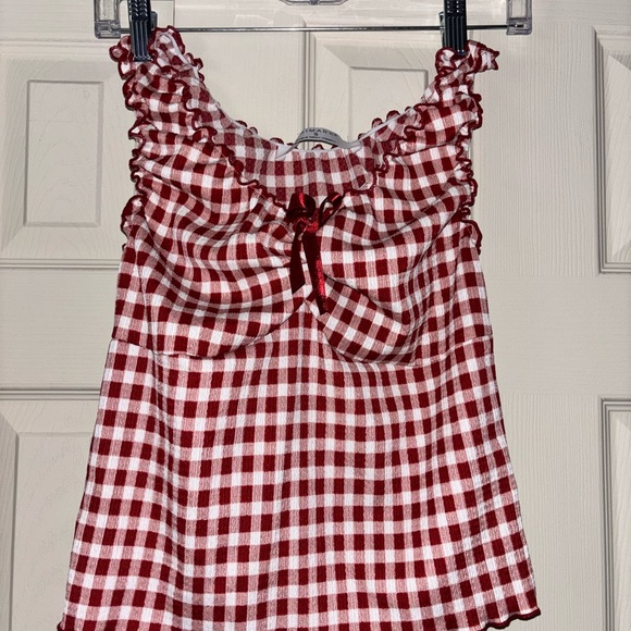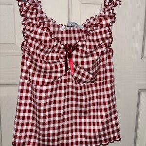 Red Gingham Ruffle Top