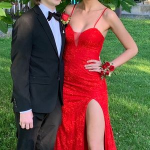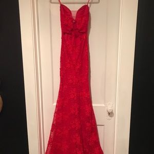 Red Gipper Prom dress floor length with slit sz 4
