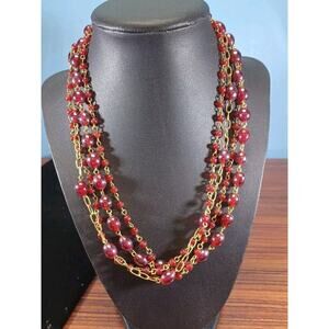 Beautiful red 4 strand beaded necklace good Pre-Owned Shape Please look at all pictures for complete condition Any Questions Please Ask Prior to purchasing Thanks for looking