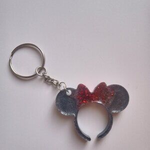 Cute Minnie ears keychain metallic black. Handmade by me. Adds glamour touch to your keys.