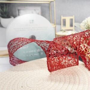 Red Glitter Mesh Wired Ribbon 2.5 inch x 20 Yds Christmas Decor Gift Wreath Bows