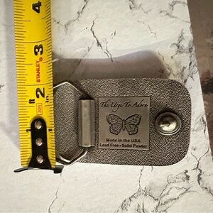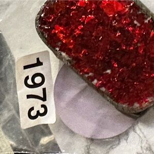 Handmade item by me I up cycled this used belt buckle with red glitter and resined it so that it will last a long time.