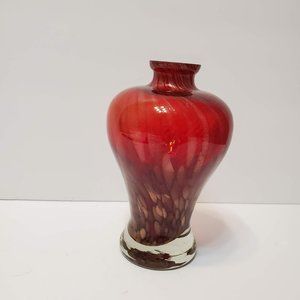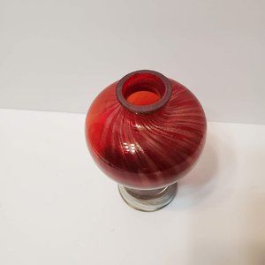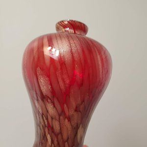 This is a stunning little art glass vase of red glass swirled with streaks of gold colored dust that really shimmers in the light. Would look beautiful with a flower or two, or could be used to hold an air plant (see last photo as an example - the air plant is not included, but please message me if you'd like the air plant also, I can include it for an extra $5). The vase is almost 6 inches tall and 3 inches at the widest point.