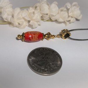 Red & Gold Boho Necklace Pendant Adjustable 6500