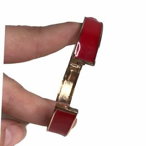 Great condition with no flaws, bundle for great discounts and I ship same day!! Beautiful thick bracelet with red and gold and a folding opening for easy on and off!