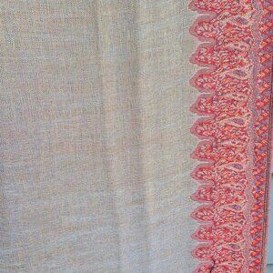 Gorgeous Pashmina is in very good pre owned condition. 55% Pashmina 45% silk. Measures about 72" + fringe x 28"