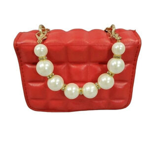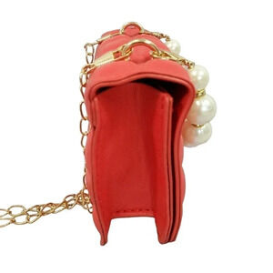 Red Pearls and Sparkles Golden Mini Clutch. Womens and Girls Bags. Purses.
