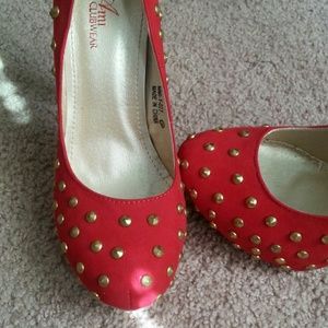 Red Golden Studded Heels