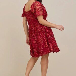 Red Goth Fairy 3D Floral Mesh Puff Sleeve Skater Dress 14W