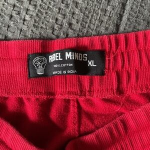 Vibrant red set with bold graphic design. Includes a T-shirt and matching shorts. Features yellow accents.