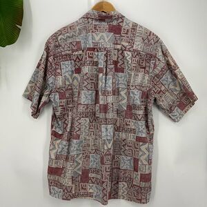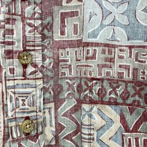 Red Gray Tan Tapa Quilt Design XL Ono Shirt by Liberty House Vintage