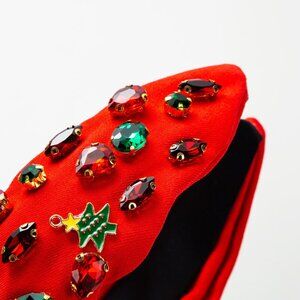 Red Green Christmas Knotted Headband with Snowflake & Tree Rhinestone Design