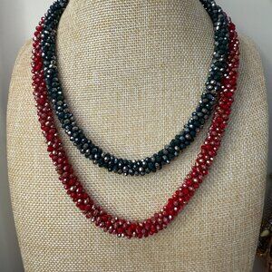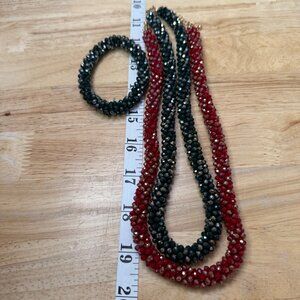 Red Green Faceted Beaded Necklaces Stretch Bracelet Set, Holiday, Glam, Festive