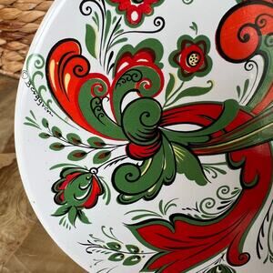 Red & Green Filigree 6” Tile oval design with felt on bottom. Shows artist signature on side. In good vintage condition no chips or cracks. Please refer to all photos for current condition and measurements.
