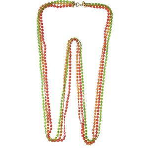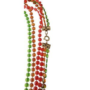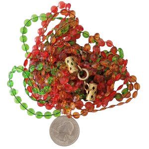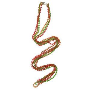 Red Green Orange Plastic Fixed Bead Multi Strand Necklace 50" Long, E219