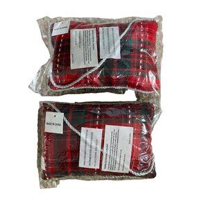 Red & Green Plaid Decorative Throw Pillows 2-Piece Set With "Peace" & "Joy" Scri