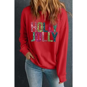 Red HOLLY JOLLY Printing Christmas Pullover Sweatshirt