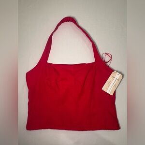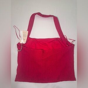 Vibrant red sleeveless top with a hood. Perfect for casual wear.