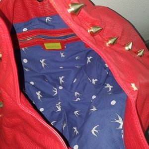 Red Handbag gold spikes small mark on strap.