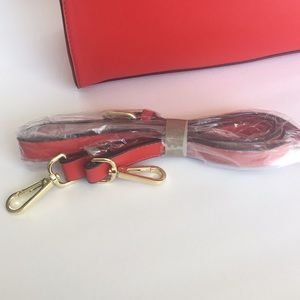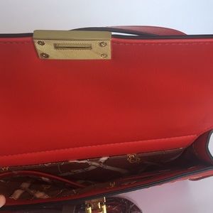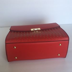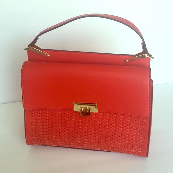 Vegan leather handbag with gold details. Option to wear crossbody with handle still in wrapping. In perfect condition. Lightly used.