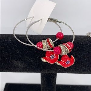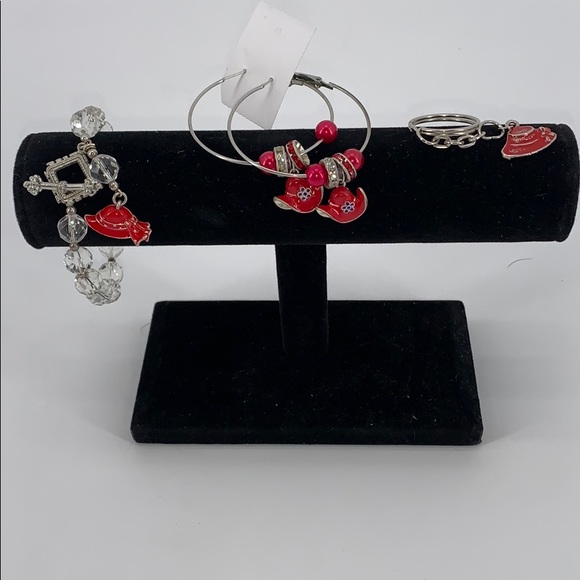 3 pieces 1 Bracelet 1 Pair of Earrings and a keychain very cute set Red Hat Society❤️