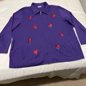 Red Hat Society Full Zip Sweatshirt Cardigan Jacket Purple Embellished