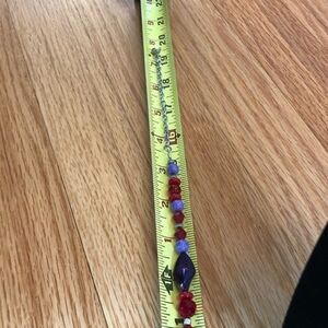 Beaded purple and red necklace with magnetic clasp which measures approximately 19 1/2 inches