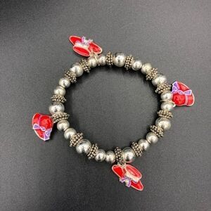 Beaded stretchy bracelet with Red Hat Society Hats