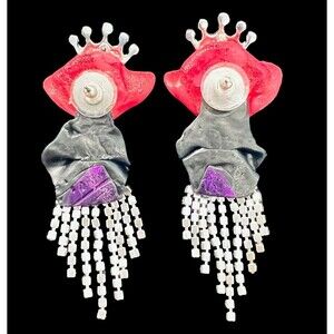 Red Hat Society queen rhinestone crown dangling stud earrings Pre-owned.