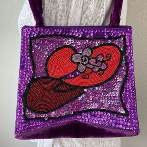 Red Hatter Society Handmades Sequined and Beaded Handbag EUC