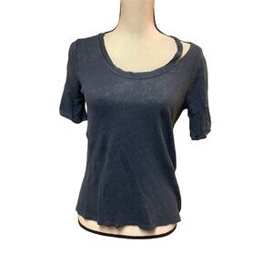 Red Haute Blue Linen Ruffle Sleeve Top -- Collar has an intended pull away design. NWT -- XS; Measurements: 28”; Length: 22”; Sleeves: 9”