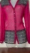 New with Tags Red Haute Silk Red and Black Lace Trim Button Down Long Sleeve Mesh Top Blouse
