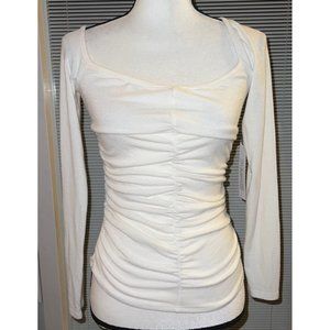 Red Haute White Scoop Neck Ruched Knit Top NWT— SMALL. Measurements: Bust: 31”; Length: 23”; Sleeve: 22”