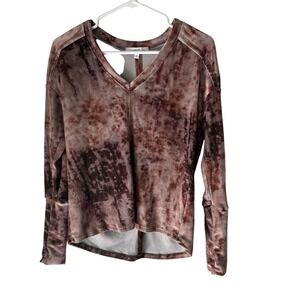 Red Haute XS Tie Dye V-Neck Long Sleeve Velour Pullover Top Casual Boho Soft