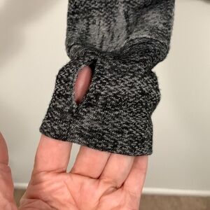 Interesting light gray dark gray pattern, thumb holes!