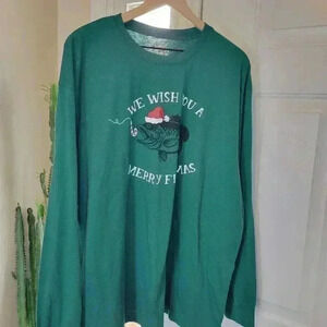 Red Head Brand Co. Merry Fishmas Green Longsleeve Tshirt, Size XL