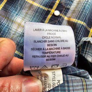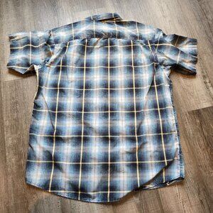 Red Head Brand Shirt Blue Mens Size Large Pearl Snap Plaid Short Sleeve Casual