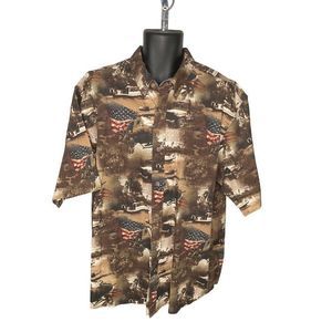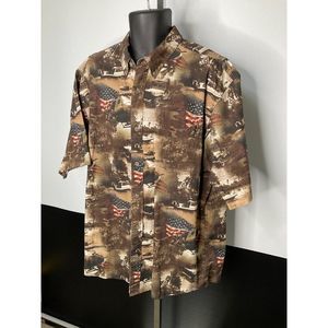 Description: Red Head Mens XL Short Sleeve Shirt Helicopter Jeep US Flag Patriotic