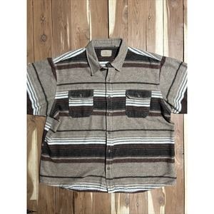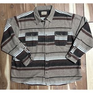 Red Head Ranch Mens Fleece Long Sleeve Button Size 2XL Brown Stripe Wool Blend