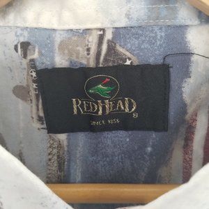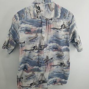 Red Head mens short sleeve button up fighter planes flags shirt L