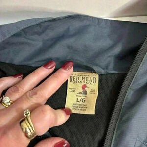 Red Head soft shell jacket. Size large. Can be man or woman’s. Cinch bottom and 3 outer pockets with zippers.