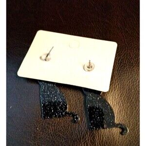 These adorable black sparkly cats got into a mess with the string of Christmas lights wrapped all around. Red hearts are above the cat.