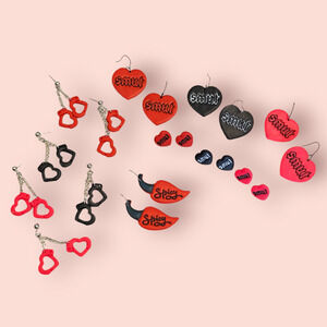 Red Heart Handcuff Dangle Earrings Polymer Clay Handmade Bold