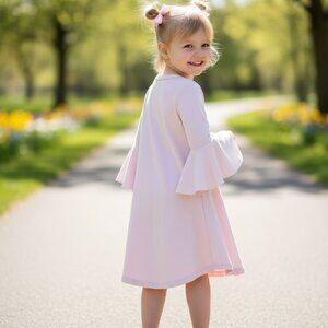 Let her sparkle from playdates to picture day in this charming blush-pink long-sleeve top, designed with love and a dash of glitter. The bold red heart at the center adds a pop of personality, while the ruffled bell sleeves bring extra flair to every wave, hug, and dance move.