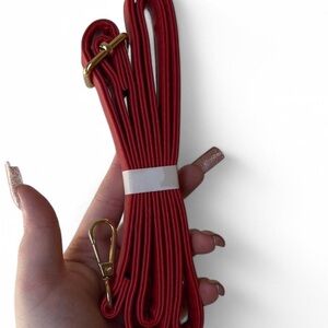 Stylish handbag with a red heart pattern. Features a top handle and front pocket.